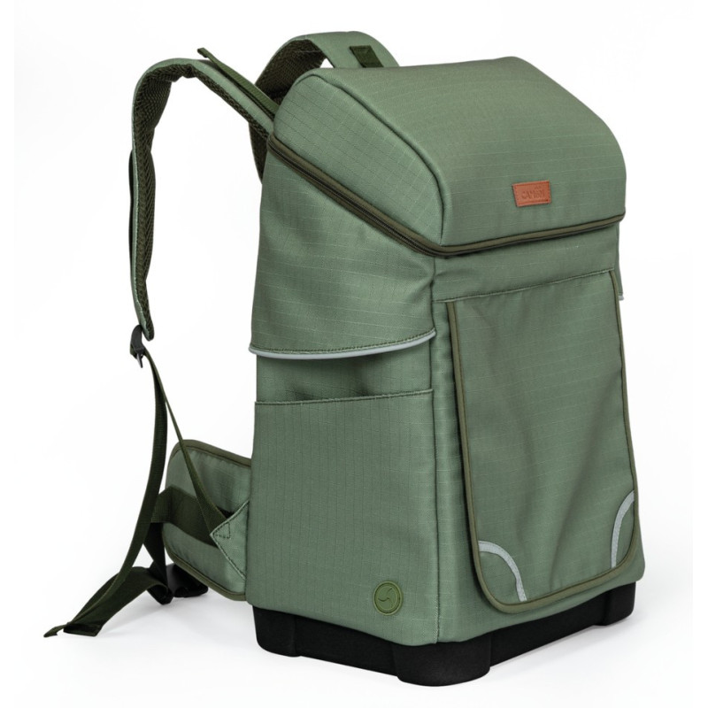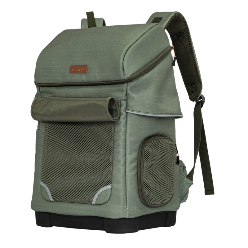 Zelený turistický ruksak na prepravu zvierat.