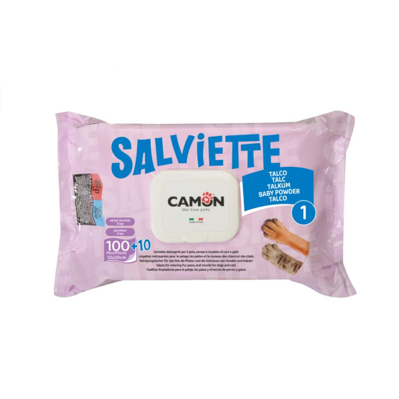 Čistiace obrúsky s vôňou mastenca na čistenie srsti a tváre. Veľmi praktické čistiace obrúsky pre vášho domáceho maznáčika, majte ich po ruke doma aj na cestách na čistenie srsti a labiek, odstránenie zápachu a čistenie tváre a uší. Ich jemné zloženie osviežuje, vyživuje a chráni srsť. Dostupné v novom 110-dielnom balení.