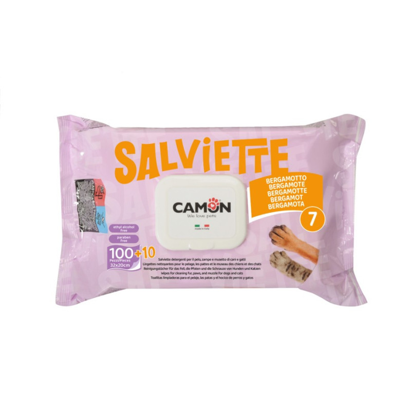 Čistiace obrúsky s vôňou bergamotu na čistenie srsti a tváre. Veľmi praktické čistiace obrúsky pre vášho domáceho maznáčika, majte ich po ruke doma aj na cestách na čistenie srsti a labiek, odstránenie zápachu a čistenie tváre a uší. Ich jemné zloženie osviežuje, vyživuje a chráni srsť. Dostupné v novom 110-dielnom balení.
