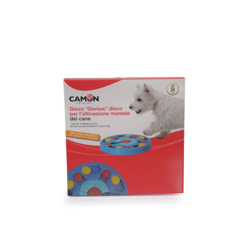 Genius je rada hračiek od Camonu, ktoré vám umožňuje otestovať mentálne a fyzické schopnosti vášho psíka, interaktívne ho stimuluje a ponúkne mu zdravú zábavu. Jednoducho schovajte jeho obľúbené maškrty do otvorov: bude sa cítiť vyzvaný, aby ich našiel a vytiahol, pričom bude používať labky aj ňufák, čím si zdokonalí svoje zručnosti.