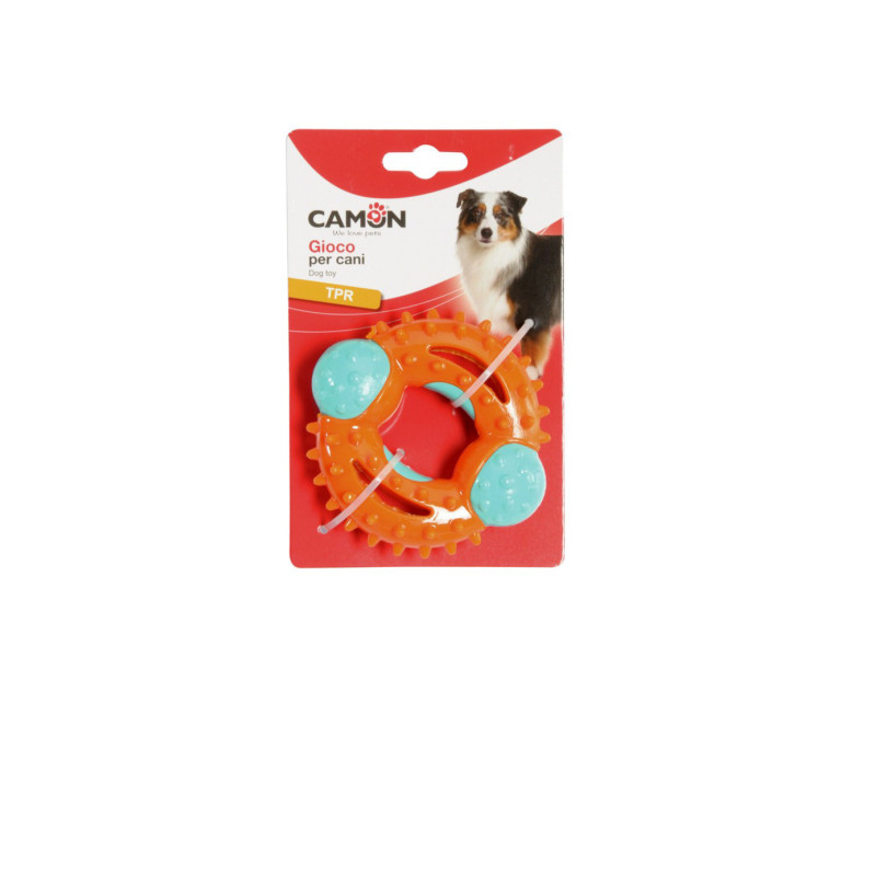 Zábavná TPR hračka pre psa v tvare ostnatého krúžku. Dostupné v dvoch rôznych farbách.