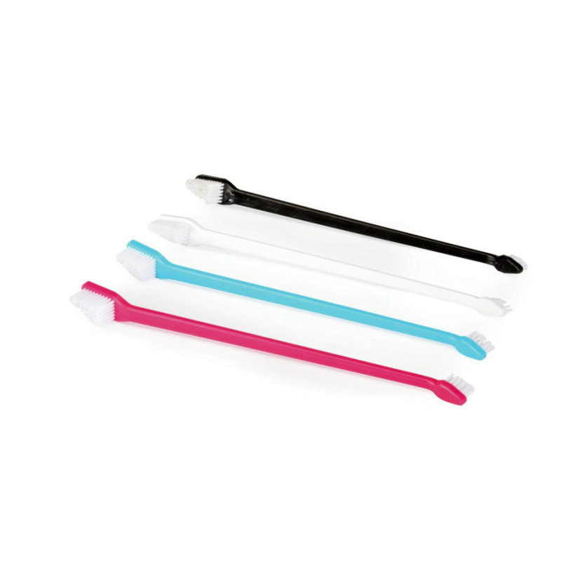 Pravidelné čistenie zubov pomáha predchádzať zubnému kameňu a ochoreniam ďasien. Tieto špeciálne zubné kefky s dvoma hlavicami rôznych veľkostí vám umožňujú čistiť vnútornú, vonkajšiu a hornú korunku zubov vášho psa s maximálnou účinnosťou. Pohodlná rukoväť navyše poskytuje dokonalý úchop počas používania. Hlavice sú vybavené vysoko kvalitnými nylonovými vláknami, ktoré ľahko dosiahnu každú štrbinu.