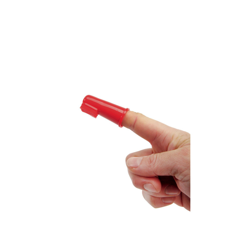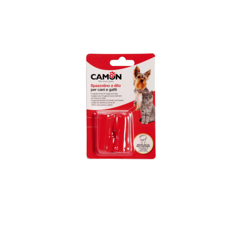 Návod na použitie: Nasaďte si kefku na ukazovák a naneste na štetiny malé množstvo zubnej pasty (napríklad zubnú pastu Orme Naturali od Camon). Teraz vložte prst do papule vášho domáceho maznáčika a malými krúživými pohybmi si vyčistite celú sadu zubov.