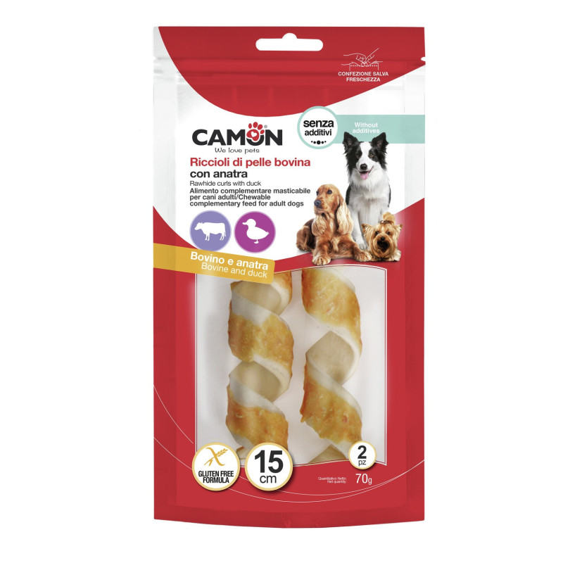 Lahodné vrkoče z hovädzej kože s kačacím mäsom, užitočné ako žuvacie krmivo, ktoré doplní dennú stravu vášho psa.