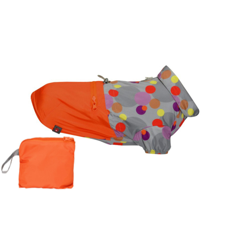 Ľahký, vodeodolný pršiplášť s vreckami a priedušnou sieťovanou podšívkou s viacfarebným vzorom s farebnými guľôčkami. Model sa dá zložiť do praktického vrecka. Dvojité zapínanie na suchý zips na bruchu. Otvor na golieri a postroji s vodeodolným zipsom a elastickými zadnými nohami.